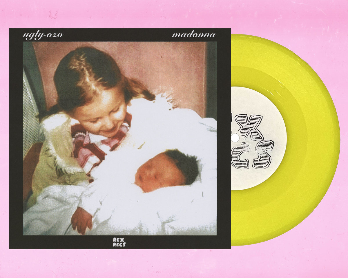 REX RECS limited edition handmade lathe cut vinyl in lucky dip colours, comes in plastic sleeve with madonna cover art and hand stamped logos